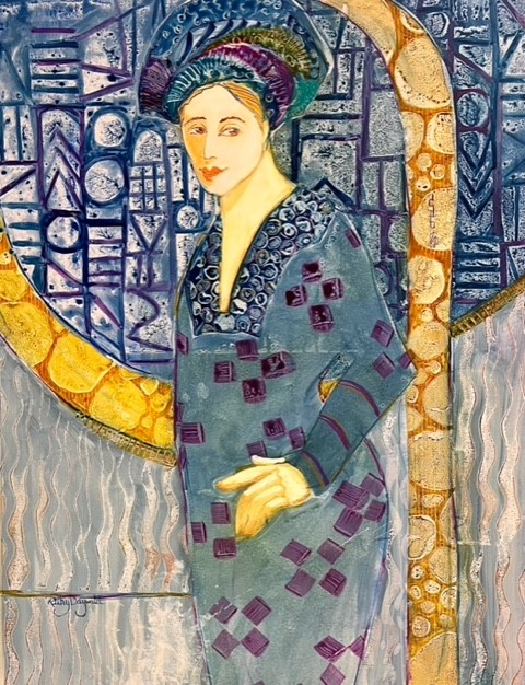 “I have always been in love with highly patterned compositions. (Matisse, Klee, Klimt and others) When I discovered YUPO paper, a whole world of possibility opened for using complex pattern in my watercolor work. Human relationship themes have been a life-long interest. I feel the highly patterned nature of my work speaks to the richness of a life of meaningful connections.”